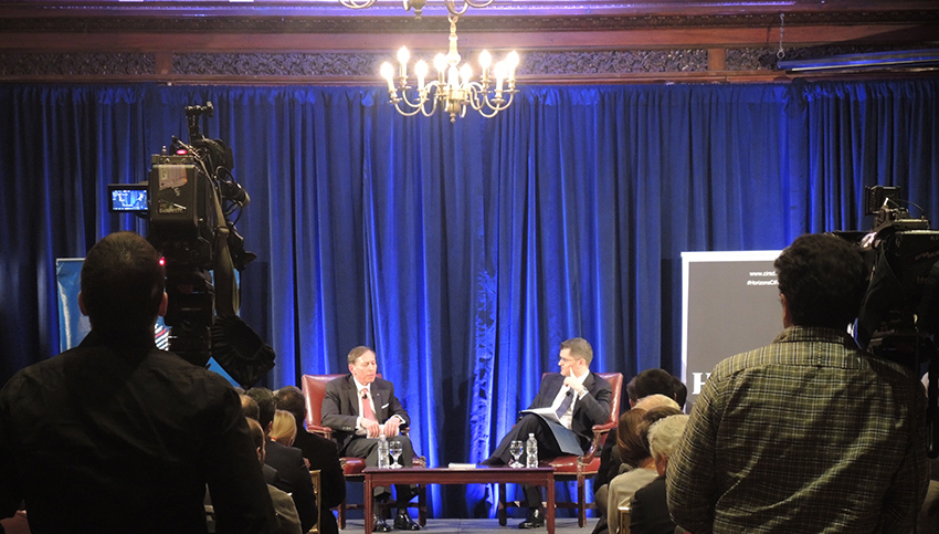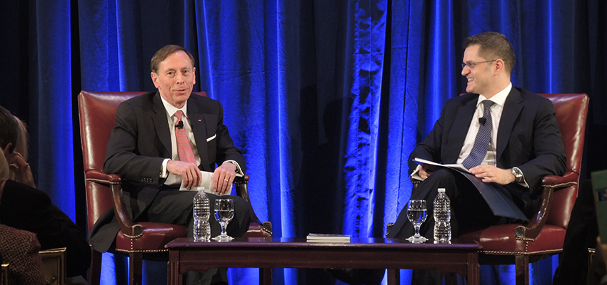 In terms of the situation in Syria, both speakers qualified it as a “geopolitical Chernobyl.” Petraeus talked about how complex the situation in Syria is and how far-reaching it might be for the stability of the entire Middle East, noting, however, that there will not be simple political or military solutions. He also said that there is a mismatch of U.S. and Russian interests in Syria, which is making the situation even more complicated.