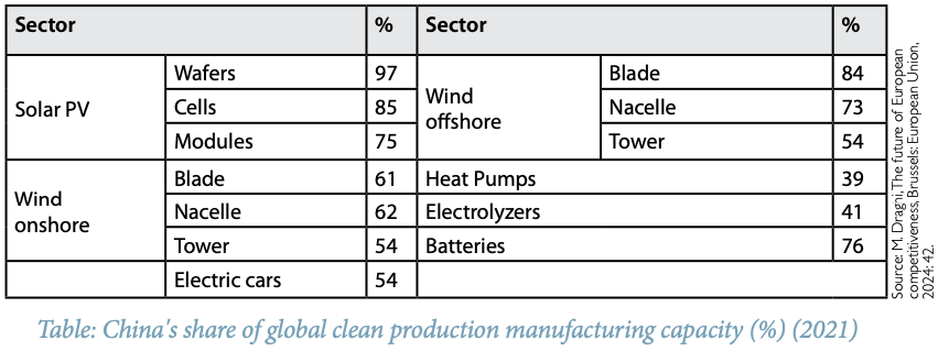 China has moved to the forefront of global electrification. The share of electricity in final energy consumption has risen to over 30 percent, compared with 22 percent in the United States and Europe. China has been described as “the world’s first electro-state.” It is leapfrogging the West in core technologies associated with electrification and the energy transition, including renewable energy, long-distance electricity transmission, high-speed rail, urban mass transport, electric vehicles, and batteries. Digital technology has penetrated daily life more thoroughly than in almost any other country. Across a wide range of clean technologies, China now accounts for more than two-thirds of global manufacturing capacity.