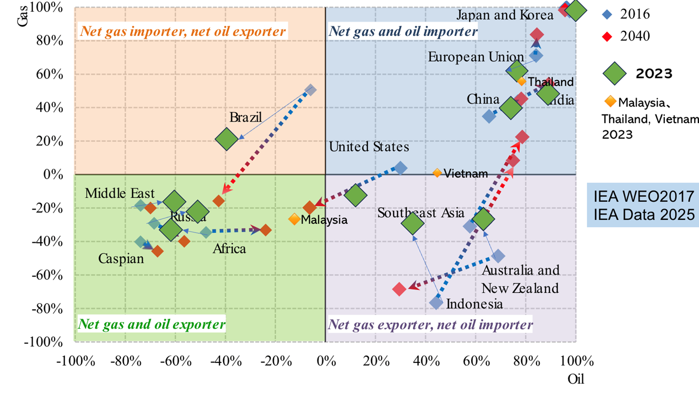 Current positions of countries in oil and gas import dependency | Source: IAE/Courtesy of the author